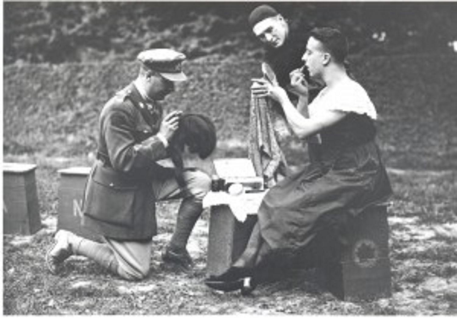 The boy survived despite a bayonet through his head. He was taken prisoner and nursed back to health.